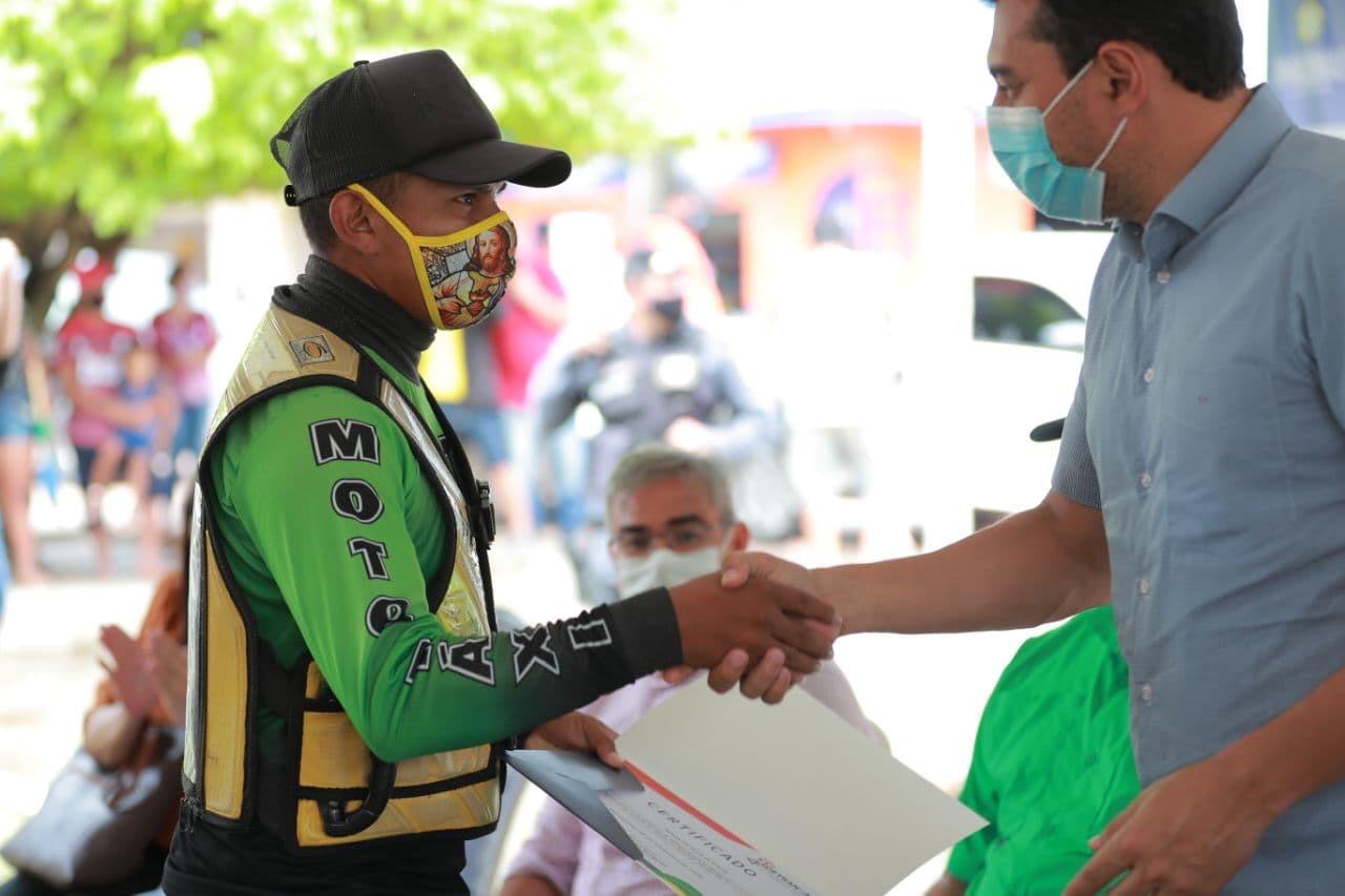 Certificados – Ainda em Barreirinha, o governador Wilson Lima fez a entrega de certificados para 80 profissionais mototaxistas que participaram de uma palestra promovida pelo Departamento Estadual de Trânsito do Amazonas (Detran-AM). A palestra abordou questões de segurança no trânsito e cumprimento de normas de circulação.