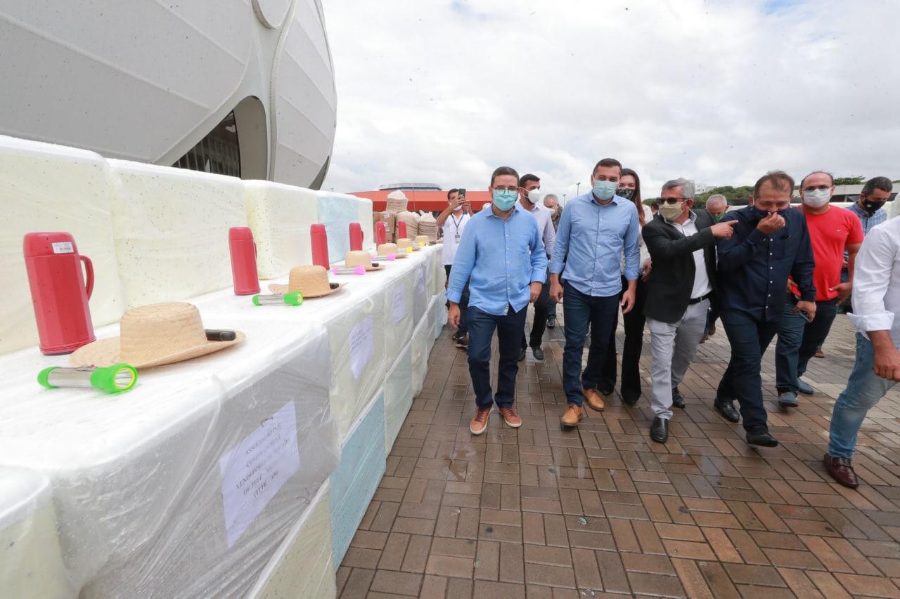 Equipamentos – O governador também fez a entrega de kits de Casa de Farinha, de Pesca Artesanal, de Análise de Água e 29 patrulhas agrícolas, totalizando investimento na ordem de R$ 2 milhões. Esses insumos e kits beneficiarão as famílias de produtores e aquicultores em vários municípios do estado e ajudarão no aumento da capacidade de produção, gerando emprego e levando alimentos para as famílias do estado, beneficiando produtores rurais da capital e interior aumentando o potencial econômico nesses setores.