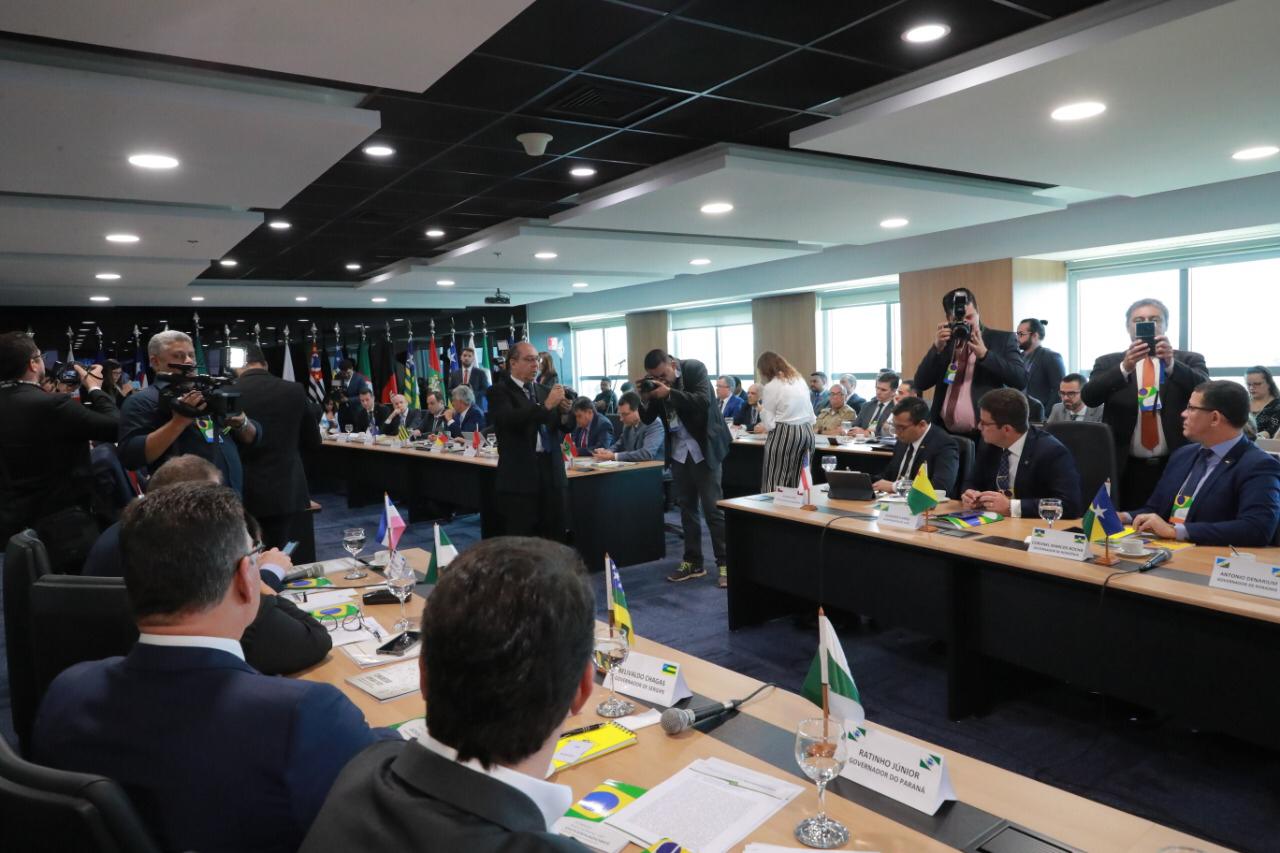 O governador Wilson Lima afirmou, nesta terça-feira (11/02), em Brasília (DF), que é a favor da redução do Imposto sobre Circulação de Mercadorias e Serviços (ICMS) dos combustíveis e de outras medidas que diminuam o preço desse bem de consumo, mas de forma responsável e técnica. Ele participou do primeiro Fórum Nacional de Governadores de 2020, que reuniu representantes, entre governadores e vices, de 21 estados da federação e do Distrito Federal, no edifício-sede do Banco do Brasil.