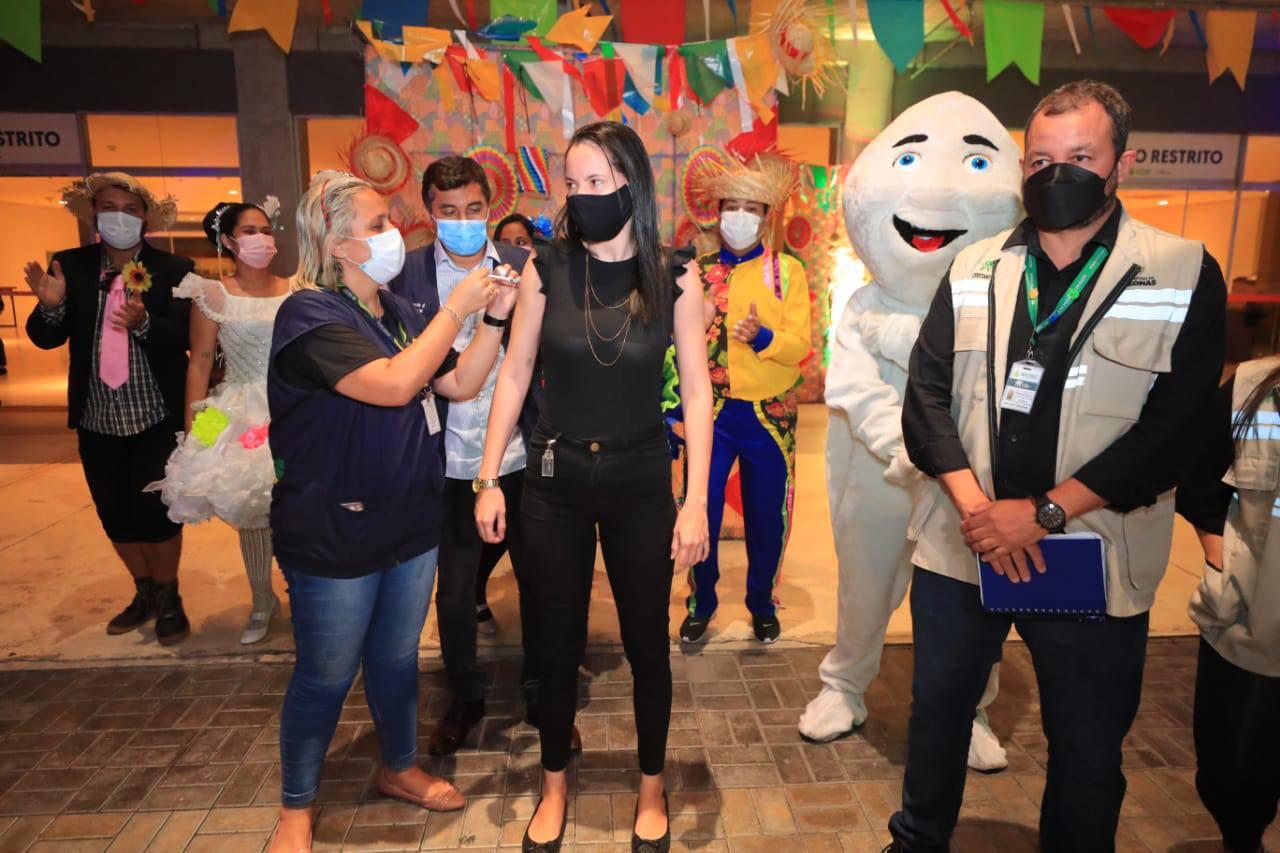 Foram aplicadas mais de 1,8 mil doses na primeira hora de atendimento. Durante a noite e madrugada, a Arena da Amazônia, o Centro de Convenções Vasco Vasques e o Sambódromo estarão abertos para receber e vacinar com a primeira dose o público-alvo deste mutirão. Os locais estão preparados com música e decoração junina. Esses três pontos continuam abertos durante toda esta quarta-feira até às 18h. Os demais pontos de vacinação da Prefeitura de Manaus funcionam no horário habitual.