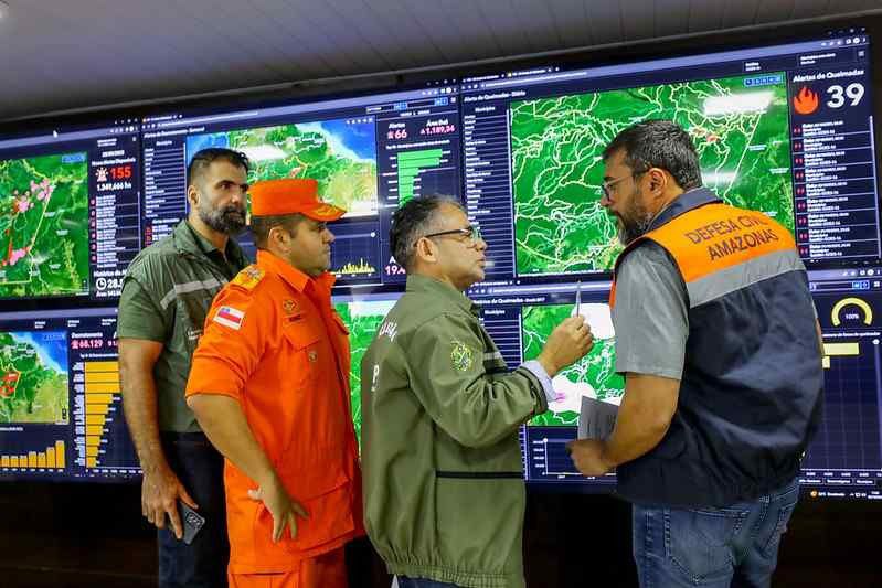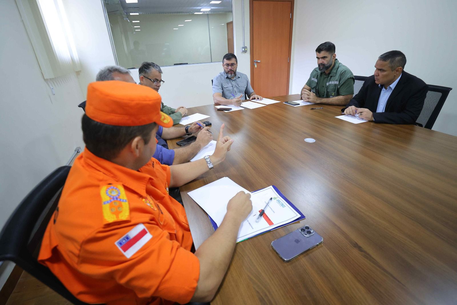 Participaram do encontro os secretários de Meio Ambiente, Eduardo Taveira; de Segurança Pública, cel. Vinícius Almeida; o secretário executivo de Defesa Civil do Amazonas, cel. Francisco Máximo; o comandante-geral do Corpo de Bombeiros Militar do Amazonas, cel. Orleiso Muniz; e o diretor-presidente do Instituto de Proteção Ambiental do Amazonas (Ipaam), Juliano Valente.
