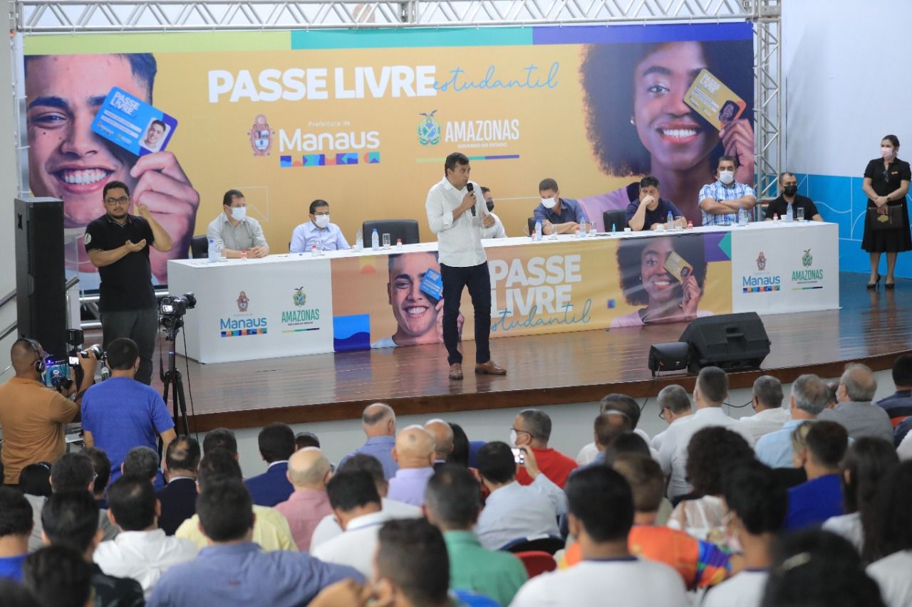 “Isso vai nos garantir que os alunos da rede estadual e da rede municipal tenham a gratuidade do transporte público para ir e voltar da escola. Isso dá tranquilidade para que a gente continue com a meia passagem para os outros estudantes e, também, dá uma folga aqui para o David fazer os investimentos em mobilidade urbana, que são necessários para melhorar o fluxo na cidade de Manaus”, afirmou Wilson Lima, durante assinatura do convênio.
