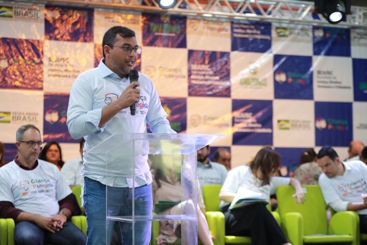Ao lado da ministra, Wilson Lima também participou do encerramento da capacitação do programa Criança Protegida, no Centro de Convenções Vasco Vasques 2, bairro Flores, zona centro-sul de Manaus.