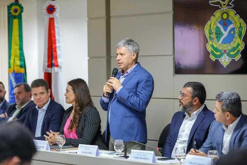 O governador Wilson Lima e o ministro do Desenvolvimento Agrário e Agricultura, Luiz Paulo Teixeira Ferreira, assinaram nesta segunda-feira (30/10), um Acordo de Cooperação Técnica para promover a regularização fundiária no Amazonas. A reunião ocorreu na sede do Governo do Amazonas, zona oeste de Manaus. Paulo Teixeira e equipe estão no estado para tratar de ações para enfrentamento da estiagem.