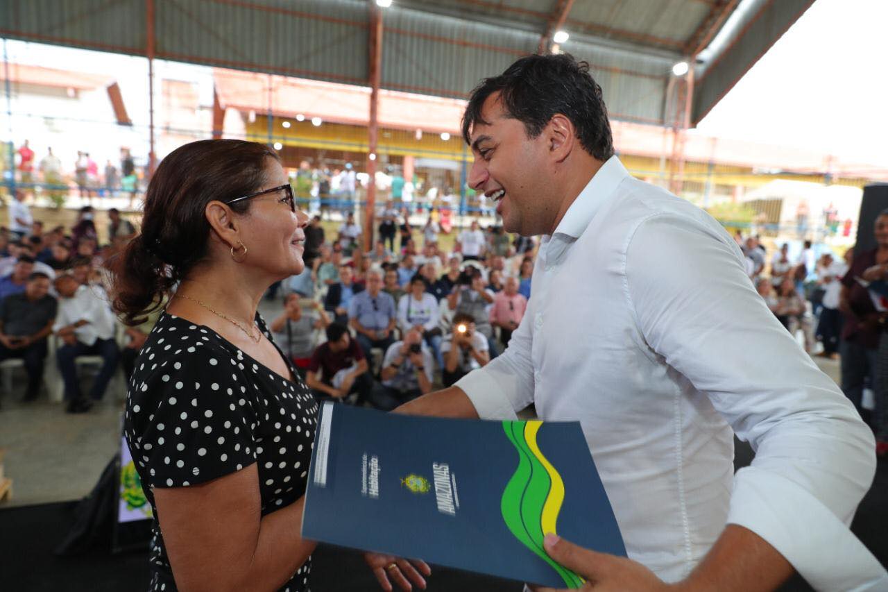 O governador do Amazonas, Wilson Lima, entregou nesta sexta-feira (06/12) parte dos R$ 445 mil em crédito e fomento destinados a 182 microempreendedores durante o programa “Muda Manaus”. No evento, realizado do Centro Estadual de Convivência da Família Teonízia Lobo, bairro Amazonino Mendes (Mutirão), zona norte, ele também entregou doze dos 100 títulos de terra liberados na ação e dez dos 95 termos de quitação de imóveis aos moradores da região.