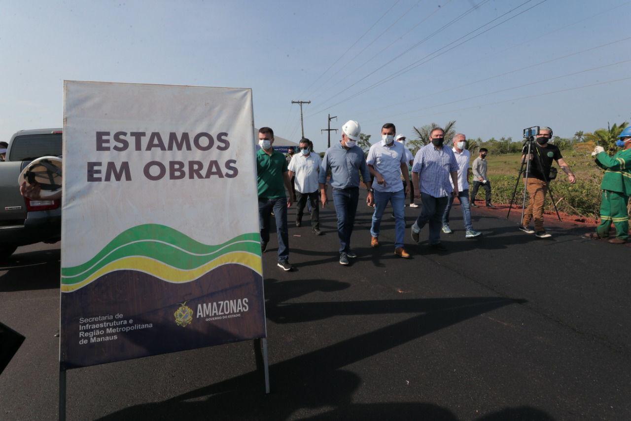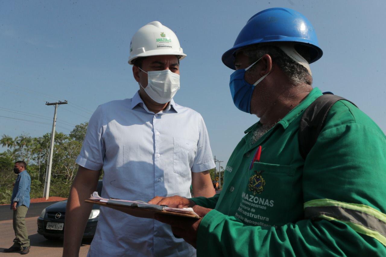 O governador Wilson Lima inspecionou, na manhã desta sexta-feira (02/10), as obras de duplicação da rodovia Manuel Urbano (AM-070), que liga Manaus aos municípios de Iranduba, Manacapuru e Novo Airão. Já foram executadas 78% das intervenções, que são realizadas pelo Governo do Amazonas, por meio da Secretaria de Estado de Infraestrutura e Região Metropolitana de Manaus (Seinfra).