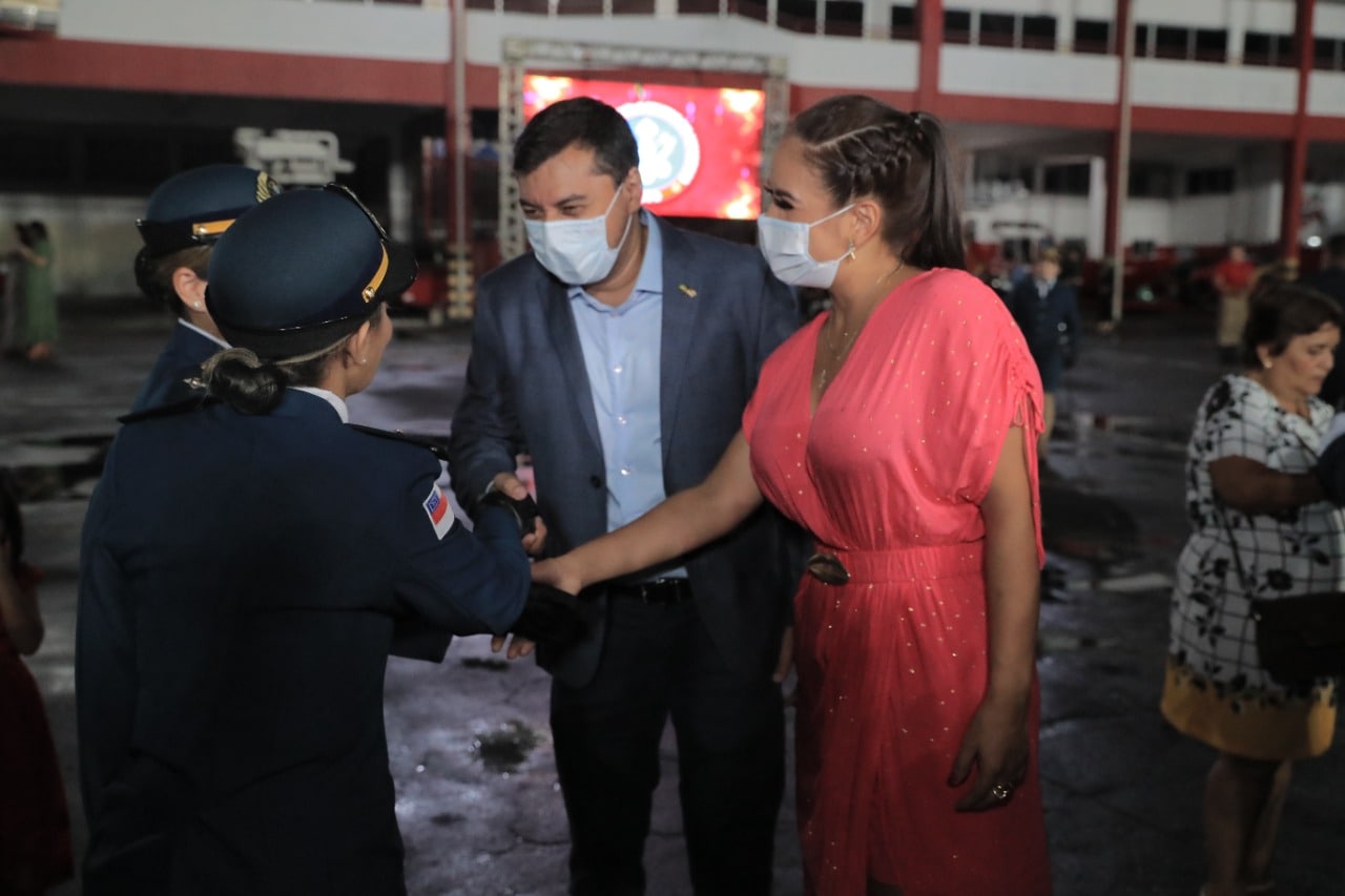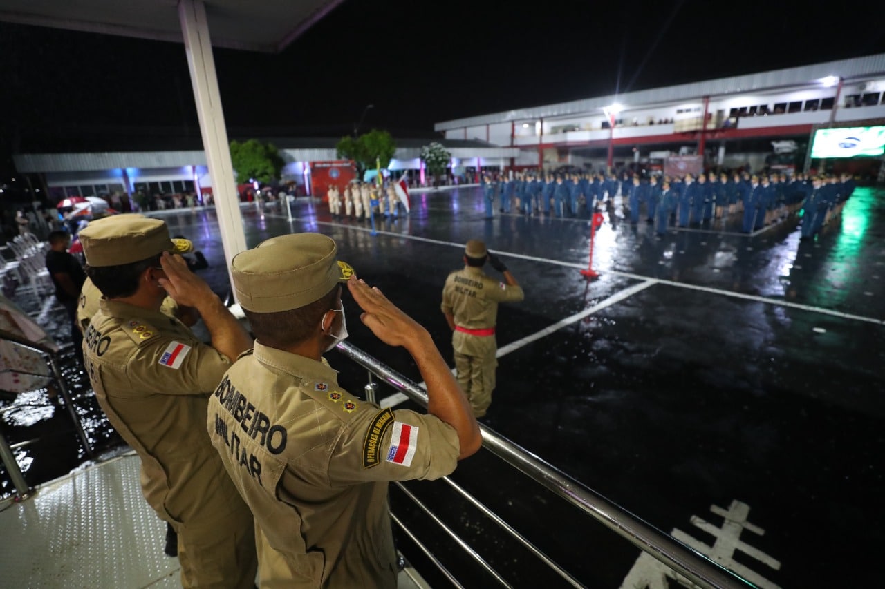 O governador Wilson Lima participou, na noite desta sexta-feira (22/10), da solenidade de formatura de 173 oficiais do Quadro Complementar de Oficiais Bombeiro Militar (QCOBM). O evento ocorreu no quartel do comando geral, localizado na avenida Codajás, bairro Petrópolis, zona sul de Manaus. Ao todo, serão formados pela corporação 483 profissionais do quadro de saúde divididos em três datas para a solenidade, em respeito aos protocolos de segurança contra a Covid-19.