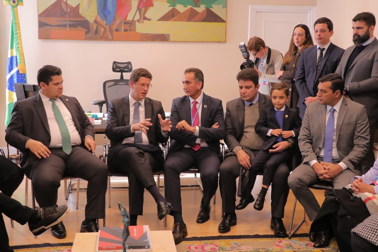 *Reunião Embaixada* – O governador do Amazonas também participou de reunião na Embaixada Brasileira em Madri, na Espanha, com a participação do ministro do Meio Ambiente, Ricardo Salles, do presidente do Senado, Davi Alcolumbre e de deputados federais. Durante o encontro, o ministro anunciou o posicionamento do governo brasileiro em relação às compensações pela proteção da floresta.