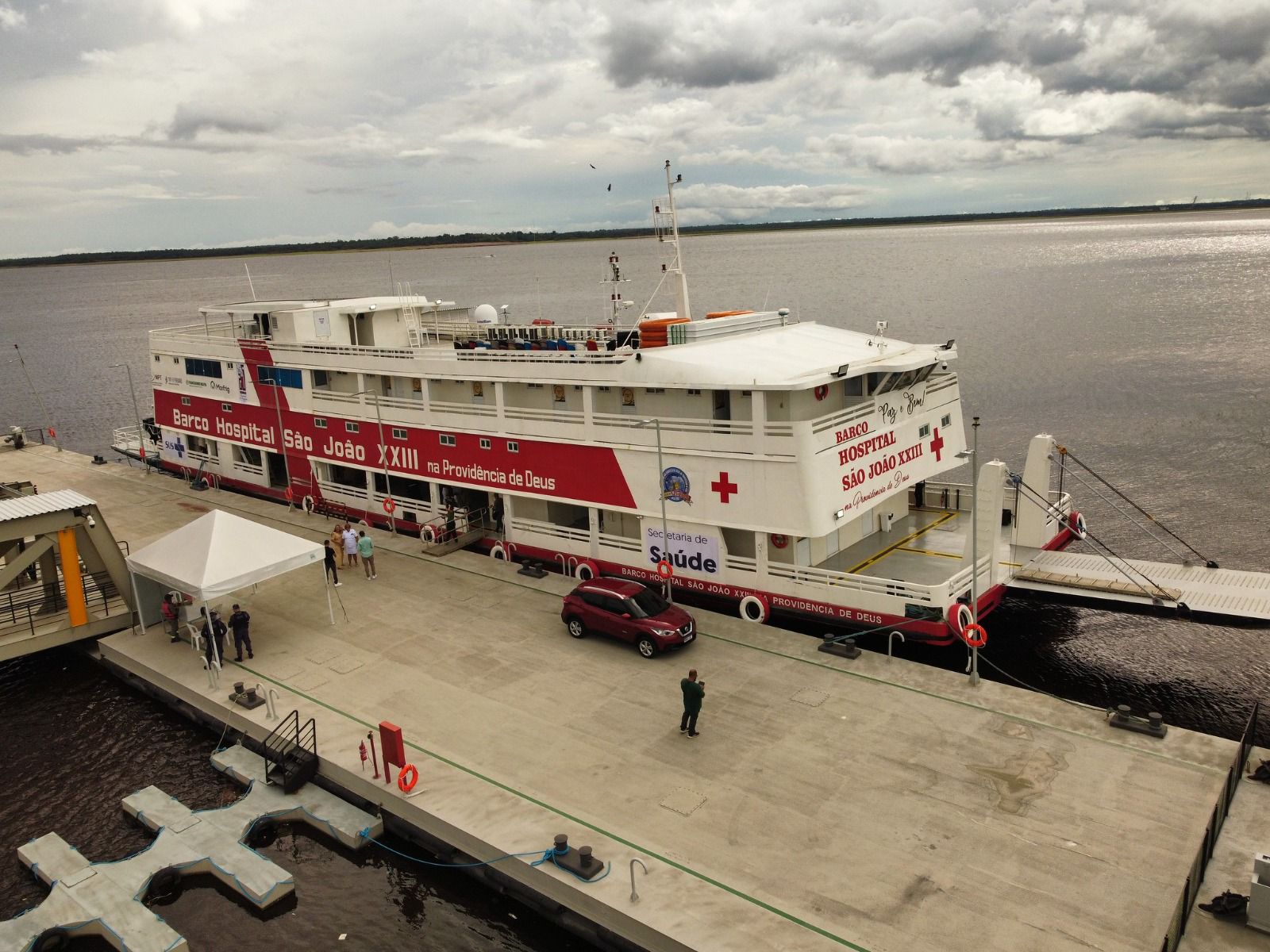 O governador Wilson Lima entregou, neste sábado (07/12), o Barco Hospital São João XXIII, moderna estrutura que reforçará a assistência médica para comunidades do interior. A embarcação é uma parceria entre a Fraternidade São Francisco de Assis na Providência de Deus, Governo do Amazonas e Ministério Público do Trabalho da 11ª Região (MPT-AM) e outros órgãos.