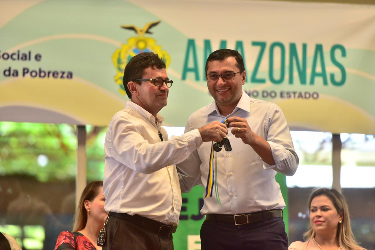O governador do Amazonas, Wilson Lima, participou, nesta sexta-feira (24/01), da entrega de 250 cadeiras de rodas universais para famílias cadastradas no Núcleo da Pessoa com Deficiência, da Secretaria de Estado de Justiça, Direitos Humanos e Cidadania (Sejusc). Durante a ação, realizada no Centro de Convivência da Família Padre Pedro Vignola, zona norte de Manaus, como parte do “Janeiro + Inclusão”, também foram entregues mais de R$ 600 mil em equipamentos e veículos para cinco Organizações da Sociedade Civil (OSCs), por meio do Fundo de Promoção Social e Erradicação da Pobreza (FPS).