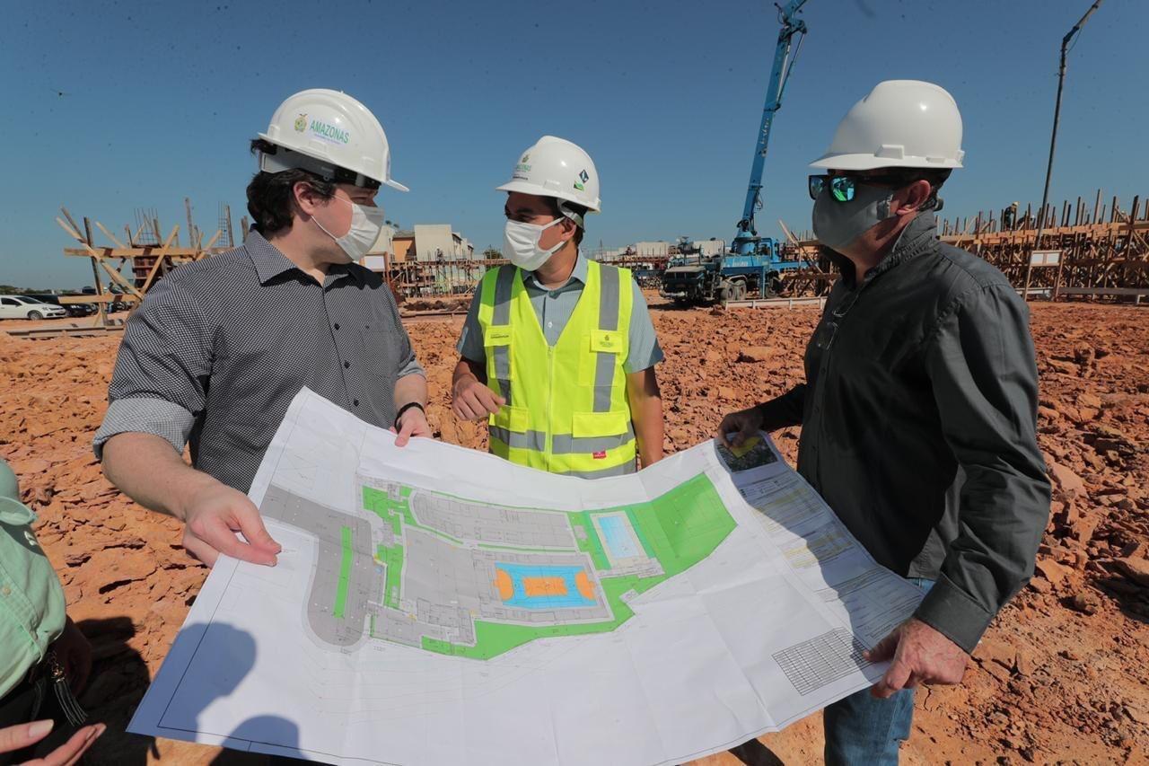O governador Wilson Lima inspecionou, na manhã desta quarta-feira (15/07), as obras do Centro Educacional de Tempo Integral (Ceti) que está sendo construído no entorno do Conjunto Viver Melhor 1, bairro Lagoa Azul, na área que havia sido ocupada de forma irregular, conhecida como Monte Horebe.